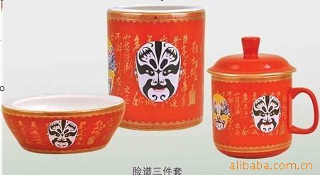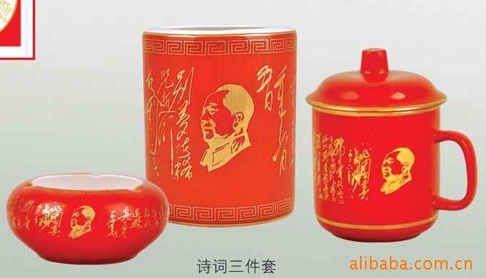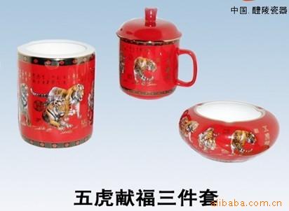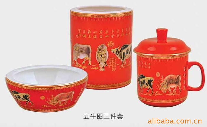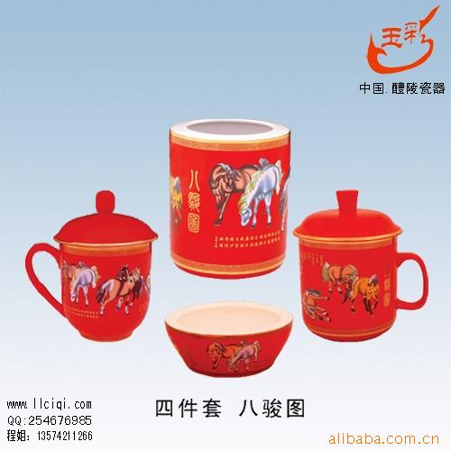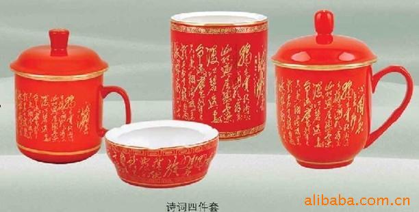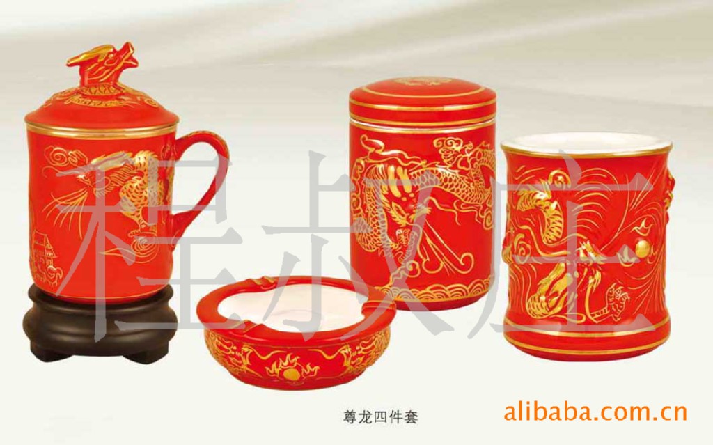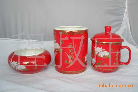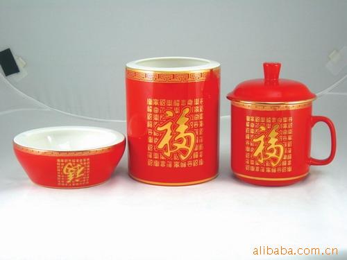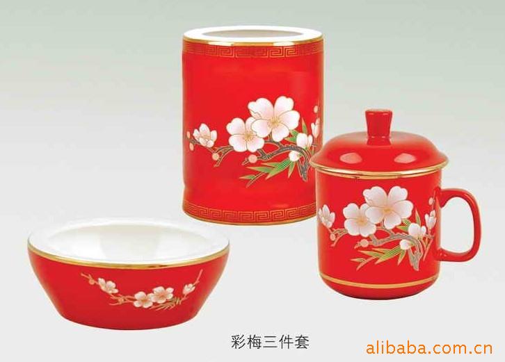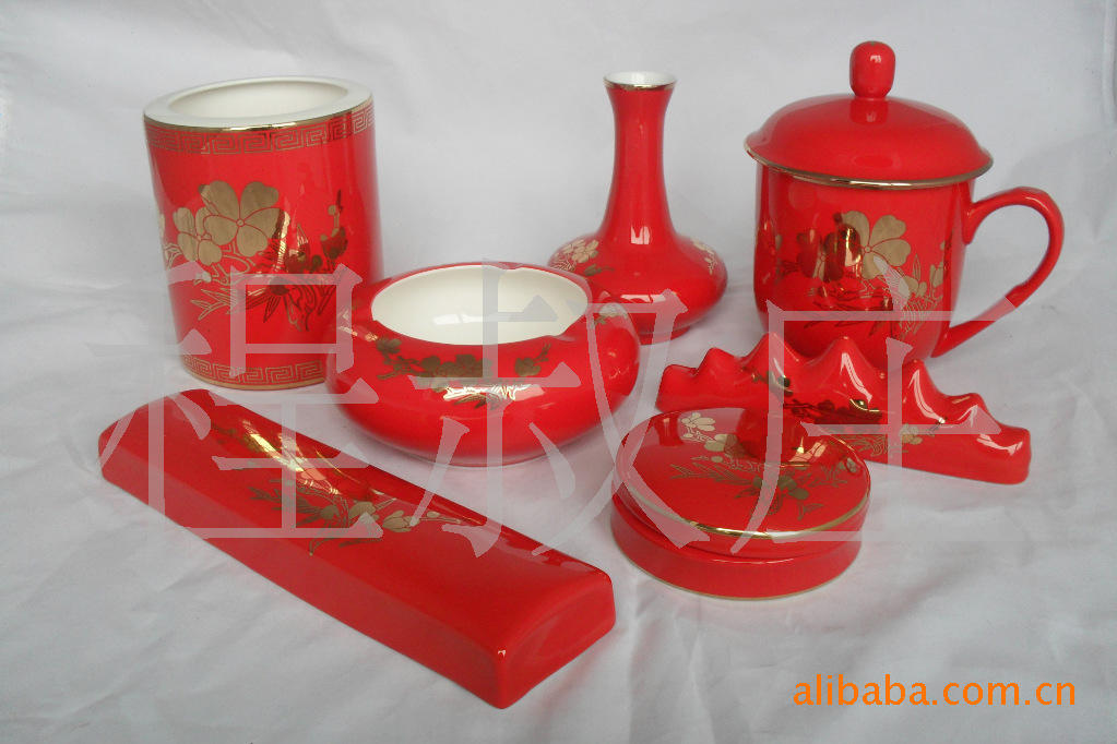 供应中国红办公文具,高档红瓷办公三件套