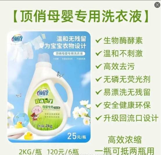 顶俏不走巨头 “品牌溢价” 的路子,主打 “亲民 + 安全”。产品涵盖多酶酵素洗衣液、果蔬清洗剂等,满足 “全家一站式洗涤” 需求。它有 8 项专利和多重认证,核心生物酵素配方经 检测与 ISO9001 体系认证,无荧光剂、增白剂、磷,用天然水果发酵提取生物酶,契合环保与健康趋势。