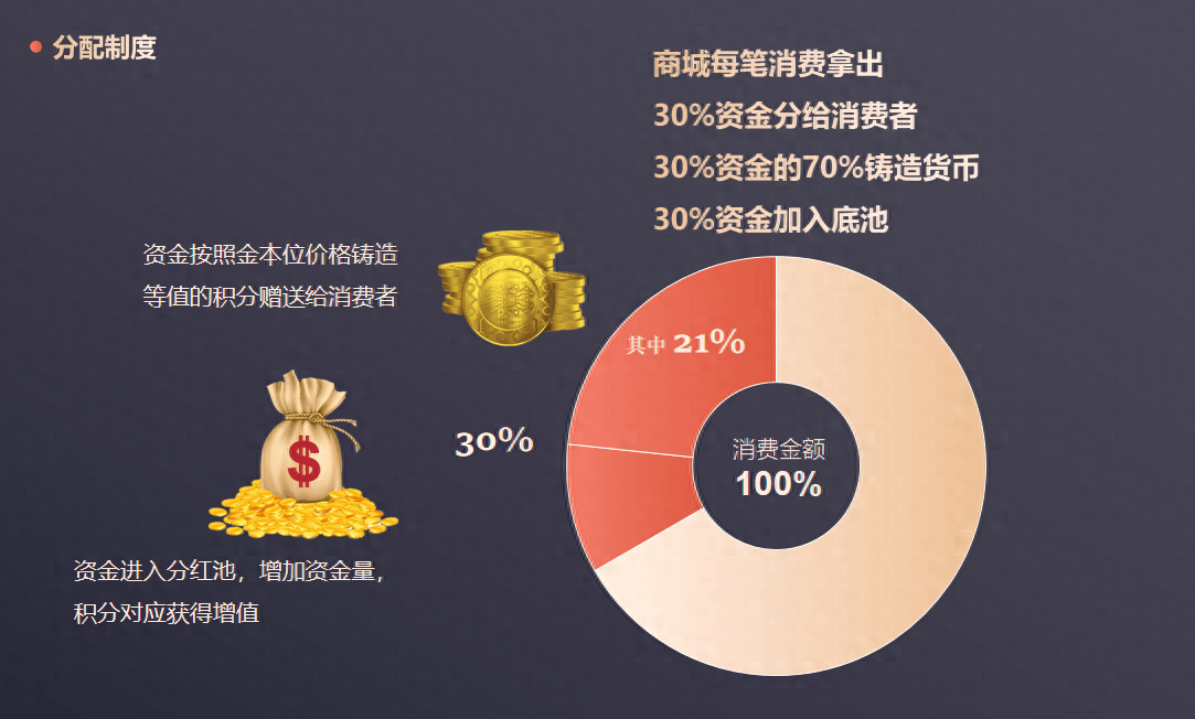 来源二:消费资金回流。系统默认配置消费金额的30%回流至资金池,持续补充资金池体量,保障积分增值的稳定性和可持续性。