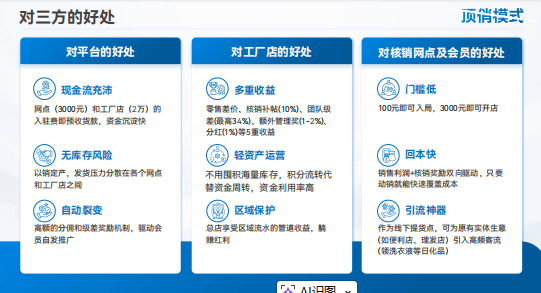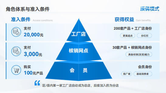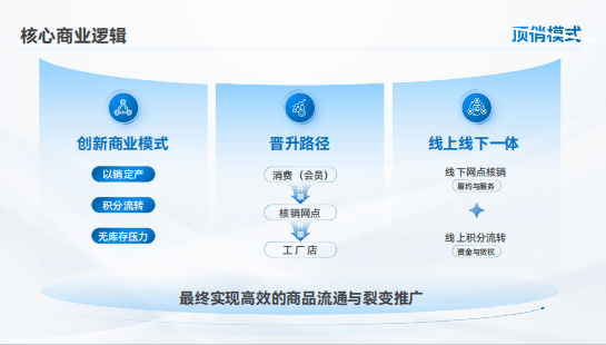 三、模式裂变:三层体系的增长密码顶俏打造 “消费 + 分销 + 股权” 三维体系,通过 “线上扫码核销 + 线下 1800 家工厂店” 覆盖 1038 个县域,5000 个核销点形成毛细血管网络: