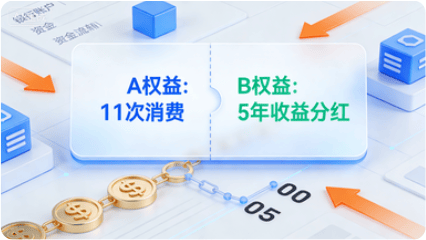 这些客群花 2000 元买一份权益,既能享受 11 次低价消费(比如酒店 200 元 / 晚,远低于市场价),还能获得你实体 1/20000 的 5 年收益分红;