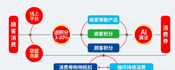 商家赠送的积分部分,70% 用来补贴消费者和商家,30% 给推广人员当佣金,大部分利益还是留在消费生态里的。