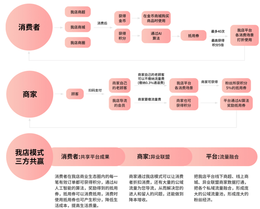 光有积分还不够,“” 还把不同行业的商家串了起来。你在超市攒的积分,能去饭馆吃饭抵扣;在饭馆花的钱攒的积分,又能去美容院做护理 —— 商家之间共享客户,平台再给点流量支持,大家都能多赚钱。